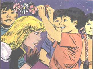 Evangeline (property of Judith Hunt and Charles Dixon) was a book by Chuck Dixon about a girl trained on the orders of renegade Cardinal Szn to be a nun ready to defend the Church by whatever means necessary. Unlike La Femme Nikita she never questions her role, although we occasionally see her in a state of anguish. We never see her show any regrets for all the killing she has done. She almost always wins, and when she doesn't there's usually a handy Catholic around to giver her a hand. We see her come close to being raped in one episode, but the sight of a crucifix on her naked chest is enough to make her assailant immediately overcome his animal nature and become her ardent accomplice, even at the cost of his life. Evangeline is always portrayed as a rather smashing blonde. Being from South America, she's sort of a Xusha with high caliber armament and prayer beads. She sometimes uses her good looks to get within range of her victims. Her usual alias is that of a Countess di Christina. Off duty we see her in something that approximates a nun's habit. The setting of the stories always seems to be uncertain, sometimes seeming to be in the near future and sometimes centuries from now. Maybe Evangeline is way older than she looks. Her favorite and first weapon is the bow and arrow. In one issue we get to see her taking on dinosaurs with a set she fabricates herself from the wreckage of a space life boat.